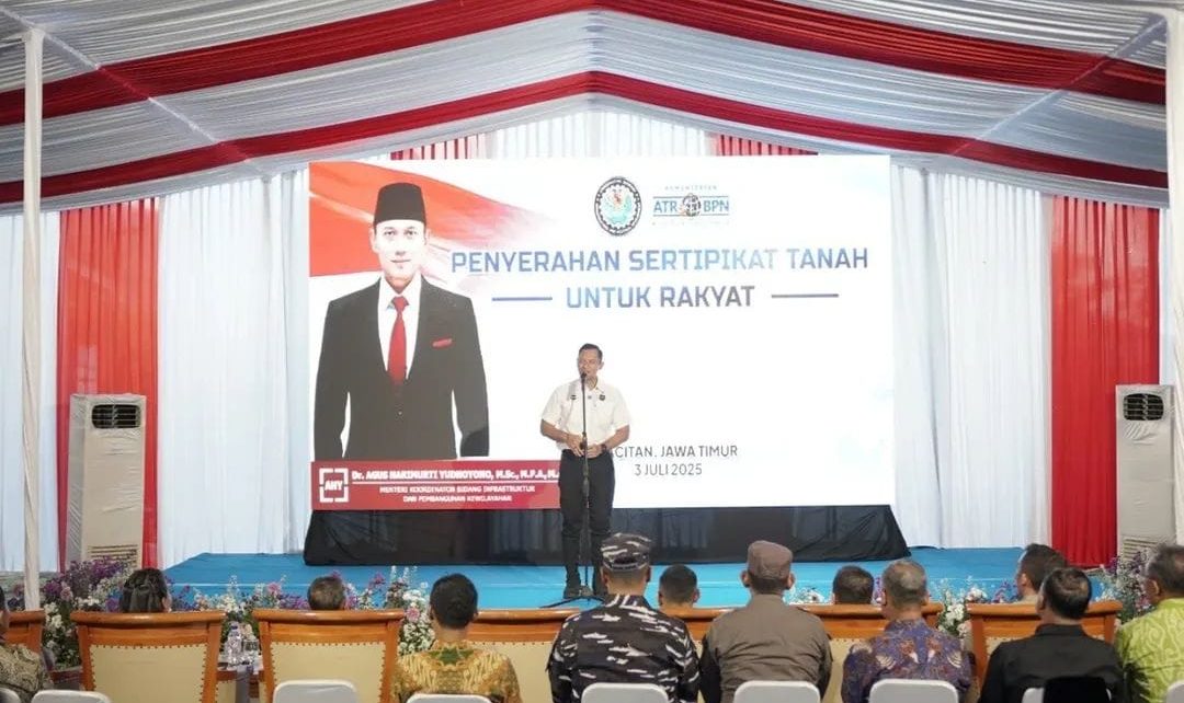 Menteri Koordinator Bidang Infrastruktur dan Pembangunan Kewilayahan RI, Agus Harimurti Yudhoyono (AHY), melakukan kunjungan kerja ke Kabupaten Pacitan pada Kamis (03/07) untuk menyerahkan sertipikat hak atas tanah kepada masyarakat. Acara penyerahan sertipikat ini dipusatkan di Dusun Krajan, Desa Sirnoboyo, Kecamatan Pacitan.