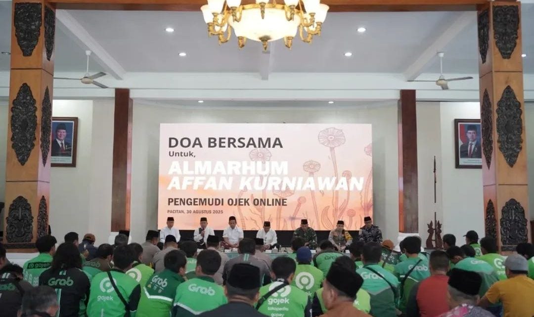 Pemerintah Kabupaten Pacitan menggelar doa bersama sebagai wujud keprihatinan atas insiden yang menimpa almarhum Affan Kurniawan, pengemudi ojek online yang meninggal saat aksi demonstrasi di Jakarta beberapa waktu lalu. Acara doa bersama ini berlangsung di Pendopo Kabupaten Pacitan pada Sabtu, 30 Agustus 2025.